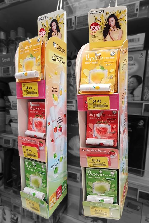 สินค้าที่เป็นขวดสเปรย์หรือการ์ดสเปรย์ ส่วนใหญ่มีขนาดเล็ก ทำให้การจัดเรียงสินค้าค่อนข้างทำได้ยาก และตั้งสินค้าไม่ค่อยอยู่ ซึ่งการทำกล่องดิสเพลย์สำหรับใส่สินค้าเหล่านี้ ถือเป็นทางออกที่ดี เนื่องจากใส่สินค้าได้จำนวนมาก ดูเป็นระเบียบ สินค้าไม่ล้มไปกองรวมกัน นั่นจึงทำให้ลูกค้าสามารถเห็นสินค้าได้ชัดเจน จะช่วยให้ขายได้ง่ายขึ้น