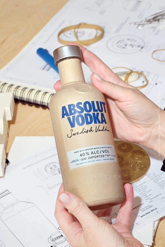 ขวดใหม่ของ Absolut Vodka นั้นใช้วัสดุที่ถอดแบบการทำงานในลักษณะเดียวกับกล่องน้ำผลไม้ เพราะในทางเทคนิคแล้ว ขวดใหม่ของ Absolut Vodka เป็นกระดาษ 57% และที่เหลือทำจากพลาสติกรีไซเคิลได้ราว 43% ทั้งหมดนี้ถือเป็นครั้งแรกที่วัสดุนี้ถูกผลิตในรูปแบบขวดแก้วที่มั่นคงแข็งแรง เพื่อไม่ให้บุบและปกป้องสิ่งที่อยู่ภายในอย่างเต็มที่